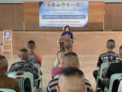 นางสาวนุสรา ขันเขตร์ นายอำเภอกุสุมาลย์ เป็นประธานเปิดโครงการศูนย์รวมพลัง รักศรัทธา แก้ปัญหายาเสพติดแบบบูรณาการ อำเภอคำตากล้า จังหวัดสกลนคร ประจำปีงบประมาณ พ.ศ. 2569 ระหว่างวันที่ 20-26 เมษายน 2569 ณ ศูนย์ส่งเสริมศิลปาชีพบ้านกุดสะกอย ตำบลโพธิไพศาล อำเภอกุสุมาลย์ จังหวัดสกลนคร โดยมีกลุ่มเป้าหมายเข้ารับการอบรม จำนวน 30 ราย